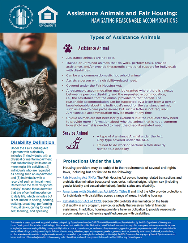 The HUD website offers a wealth of information on fair housing laws, including resources specifically for landlords. This includes guidance on reasonable accommodations for tenants with disabilities, assistance animals, and avoiding discriminatory advertising.